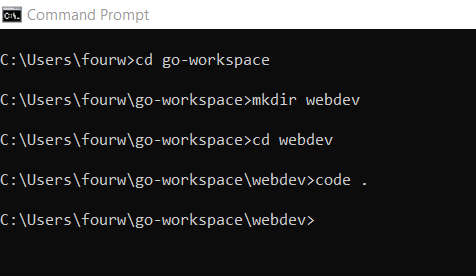 As soon as we type code ., the IDE opens up. In this case, we are using VS Code.