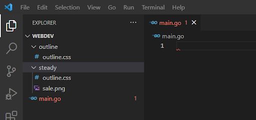 Next, we create another folder steady inside the webdev directory. And we include two more files named sale.png (which consists of a random image) and outline.css.