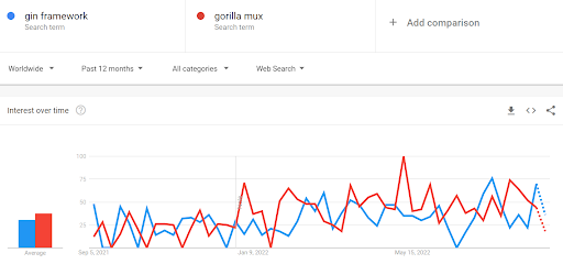 If you take a look at the graph below, you will find that developers tend to lean more towards the gorilla mux library in comparison to the gin framework.