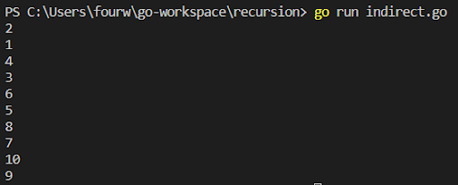 We will save this program in another Go source file titled ‘indirect.go’